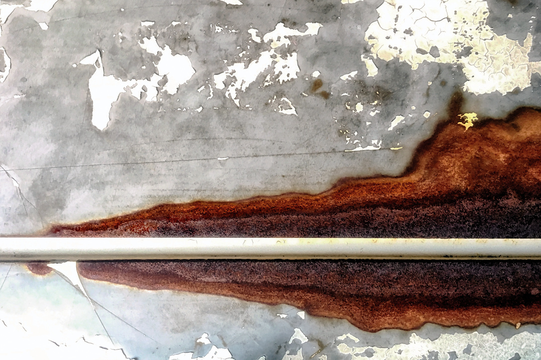 '아이거북벽' 파란 철제 약품통 뚜껑 부위에 흘러내린 약품이 비바람에 흩어지며 얼룩이 생긴 것이 마치 별이 빛나는 밤의 아이거북벽 같아 보인다.