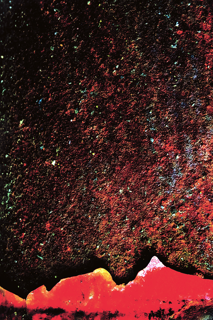 '만추' 빨간 페인트가 칠해진 대문에 페인트가 들고 일어나고, 들고 일어난 부위 끝에 여름의 강한 햇빛이 비춰 마치 만년설산이 보이는 듯하다. 빨간 페인트 자체가 가을단풍이 벌겋게 물들은 홍산같다.