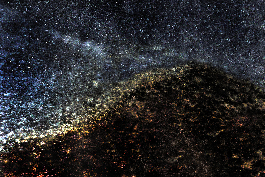 '미리내' 파란 철 대문의 밑은 녹슬고 페인트가 모래바람에 벗겨지고 그 위에 티끌이 묻은 것이 친구들과 땀 흘리며 산행하다 정상 밑에서 비박하며 술 한 잔과 함께 우정을 나누다가 잠시 텐트 밖으로 나왔을 때 바라본 밤하늘 같다. 쏟아질 듯 수많은 별들과 기다란 은하수, 그 벅찬 감동이 이 녹슨 장면에서 다시 내 가슴을 휩쓸고 지나갔다.