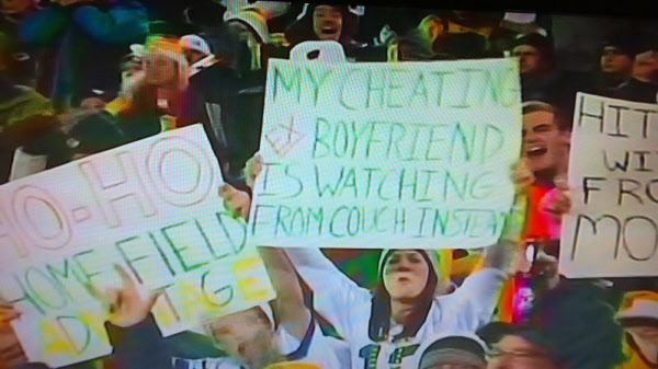 2011년 12월 25일, 미국 밀워키의 한 프로 미식축구 경기장 응원석에 나타난 이 플래카드는 NBC 방송의 ‘선데이 나이트 풋볼’ 프로그램을 통해 미 전역과 인터넷으로 퍼졌다.