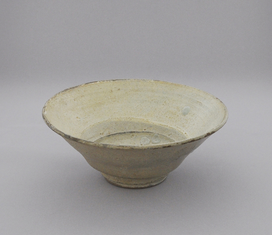 16세기 경남 지역의 조선분청사기 완. 굽운 죽절굽이며 굽칼로 굽과 몸통의 경계인 굽언저리를 깍아낸 형태가 매우 특이하다. [사진 경운박물관] 이번 전시에는 다완뿐 아니라 녹갈색 유약을 안쪽까지 바른 10세기 고려녹청자 해무리굽완을 비롯해 희귀한 다완들도 여러 점 나온다.
