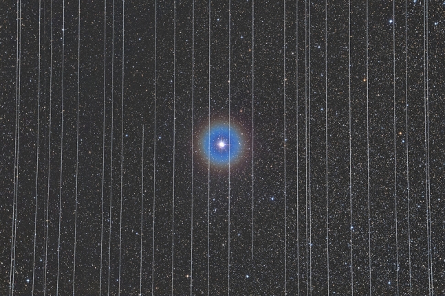 사람과 우주 부문 수상작 ‘기술의 감옥’. 밤하늘에 위성들이 지나간 흔적을 150초 노출로 담았다. 아름다우면서도 충격적인 사진, 미래의 밤하늘을 예언하는 사진이란 평을 받았다. © Rafael Schmall