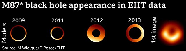 연구진은 2009, 2011, 2012, 2013년 관측 결과를 2017년 영상과 비교해 블랙홀이 시간에 따라 모습이 달라진다는 사실을 알아냈다. 2009~2013년 관측 결과는 사진을 만들 정도의 해상도가 되지 않아 2017년 사진을 만든 수학 모델로 부족한 부분을 합성했다고 연구진은 밝혔다.