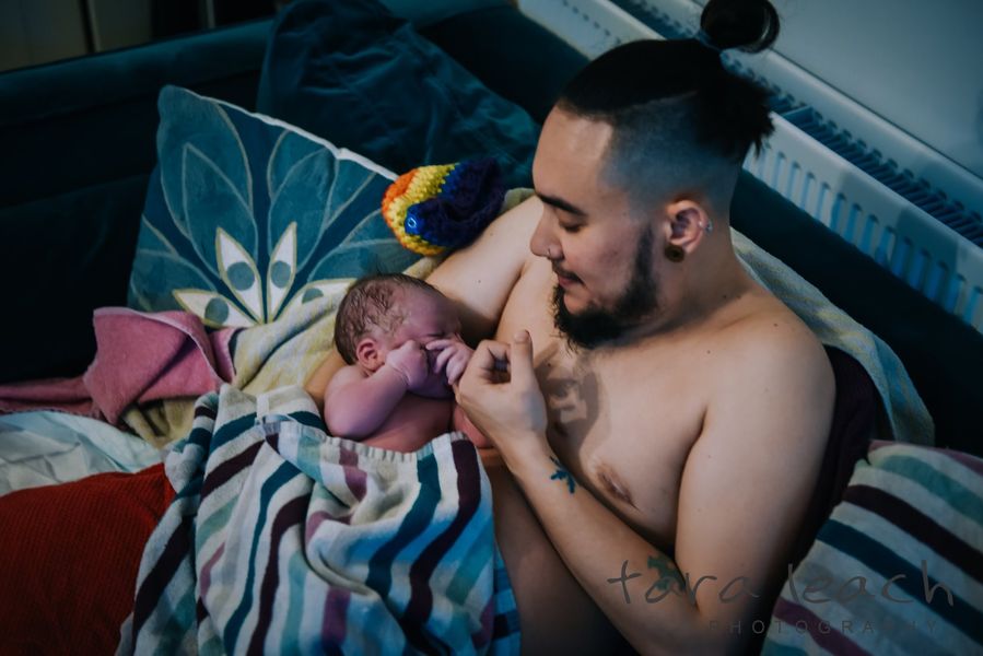 ″갑자기 이 사진을 세상에 공개해야겠다는 생각이 들었다. 가정에서 출산하는 것과 트랜스젠더 및 논-바이너리(남성과 여성이라는 이분법적인 성별로 자신을 규정하길 거부하는 사람)의 출산이 자연스러운 일이라는 걸 알리고 싶다. 이 사진들은 그런 자연스러운 모습을 담았다”라고 그는 설명했다.