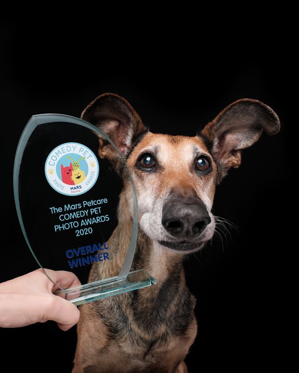 웃긴 반려동물 사진전 종합우승작의 주인공인 누들에게 상패를 수여하는 모습./Comedy Pet Photography Awards