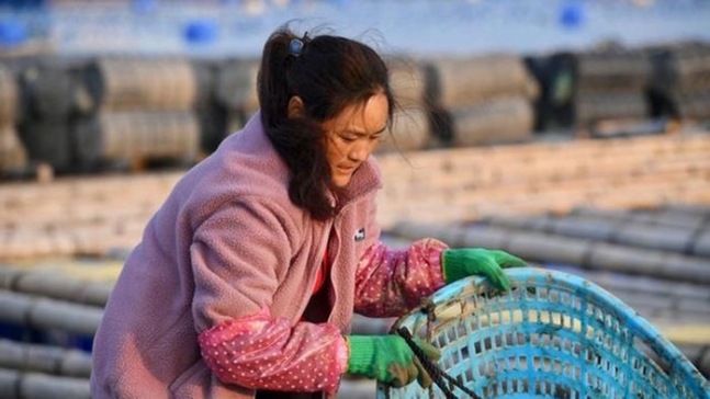 푸젠성에서 해삼 양식을 하고 있는 바무위부무