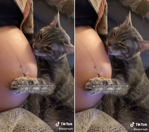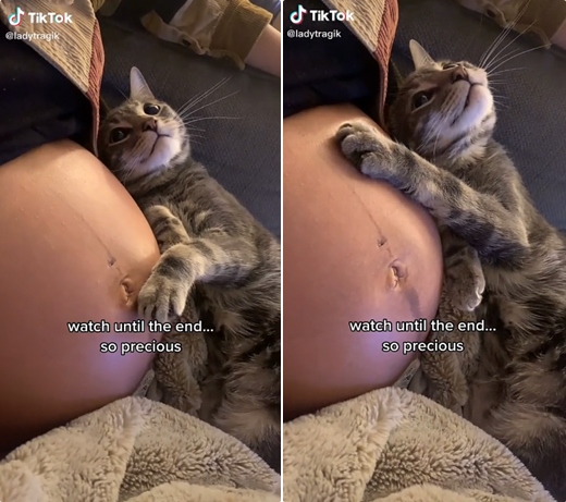 고양이 집사가 뱃속에 소중한 아기를 품고 있다는 것을 눈치챈 고양이가 보인 행동이 동영상 공유 플랫폼 틱톡에서 화제다.