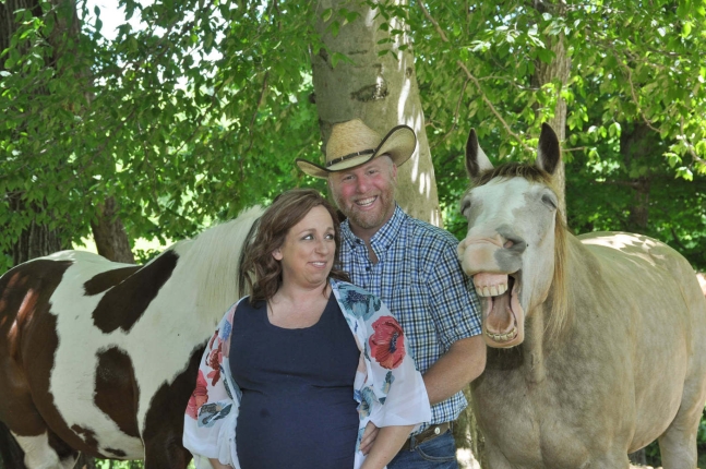 한 부부의 만삭 화보 촬영에서 함께 사진을 찍은 말이 활짝 웃어 화제다. (크리스틴 자피로 페이스북 갈무리) © 뉴스1