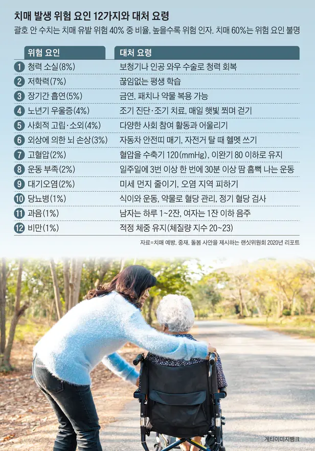 자료=치매 예방, 중재, 돌봄 사안을 제시하는 랜싯위원회 2020년 리포트, 그래픽=송수현