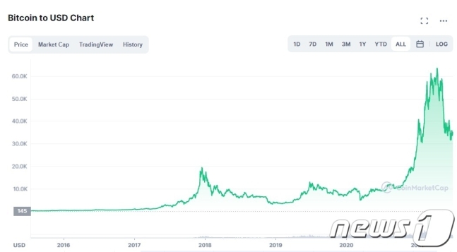 비트코인 상장 이후 가격 추이 - 코인마켓캡 갈무리