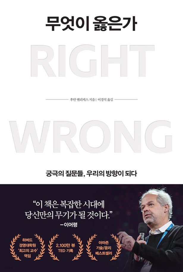 -2014년 출간된 마이클 샌델의 ‘정의란 무엇인가’는 한국에서 매우 오랫동안 베스트셀러였습니다. 한국인은 ‘정의’보다는 ‘공정’에 예민한 사람들이라 다소 의아한 신드롬이었죠. ‘무엇이 옳은가’는 ‘정의란 무엇인가’의 정치 철학보다 더 넓은 시야를 다루고 있습니다. 2022년의 후안 엔리스케는 2014년의 마이클 센델이 던진 질문에서 얼마나 더 멀리 나아갔습니까?