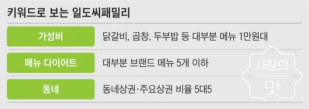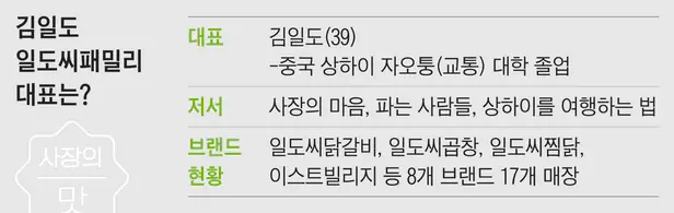 닭갈비, 찜닭, 곱창, 돈까스... 어딜 가도 흔히 볼 수 있고 접할 수 있는 메뉴입니다. 그런데 이렇게 흔하디 흔한 메뉴로 외식업계에서 존재감을 높이고 있는 사장이 있습니다. 일도씨닭갈비, 일도씨곱창, 일도씨찜닭, 이스트빌리지 등 8개 브랜드 17개의 매장을 운영하는 일도씨패밀리 김일도(39) 대표입니다.