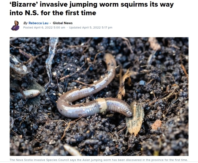 캐나다 글로브앤메일 홈페이지에 노바스코샤주에서 처음 지렁이가 발견됐다는 소식이 게재돼있다.