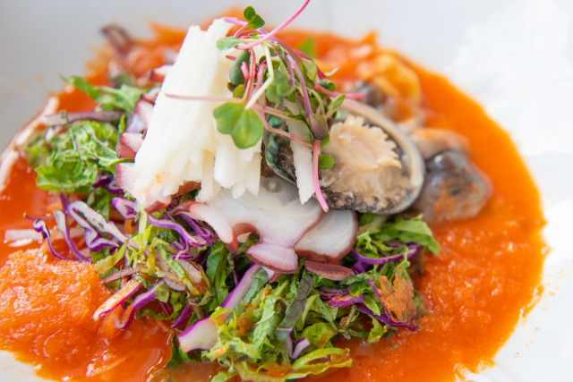 금강산 가는 길목에 위치한 고성은 동해안 최북단의 청청한 황금어장을 자랑한다. 삼선녀어장, 저도어장, 북방어장 등 3대 어장과 연안에서도 다양한 해산물이 생산되고 있다. 대문어, 광어, 가자미, 우럭은 기본이고 오징어, 전복치, 미역치, 놀래미, 해삼, 멍게, 소라 등 바다가 내어주는 식재료가 넘쳐난다.