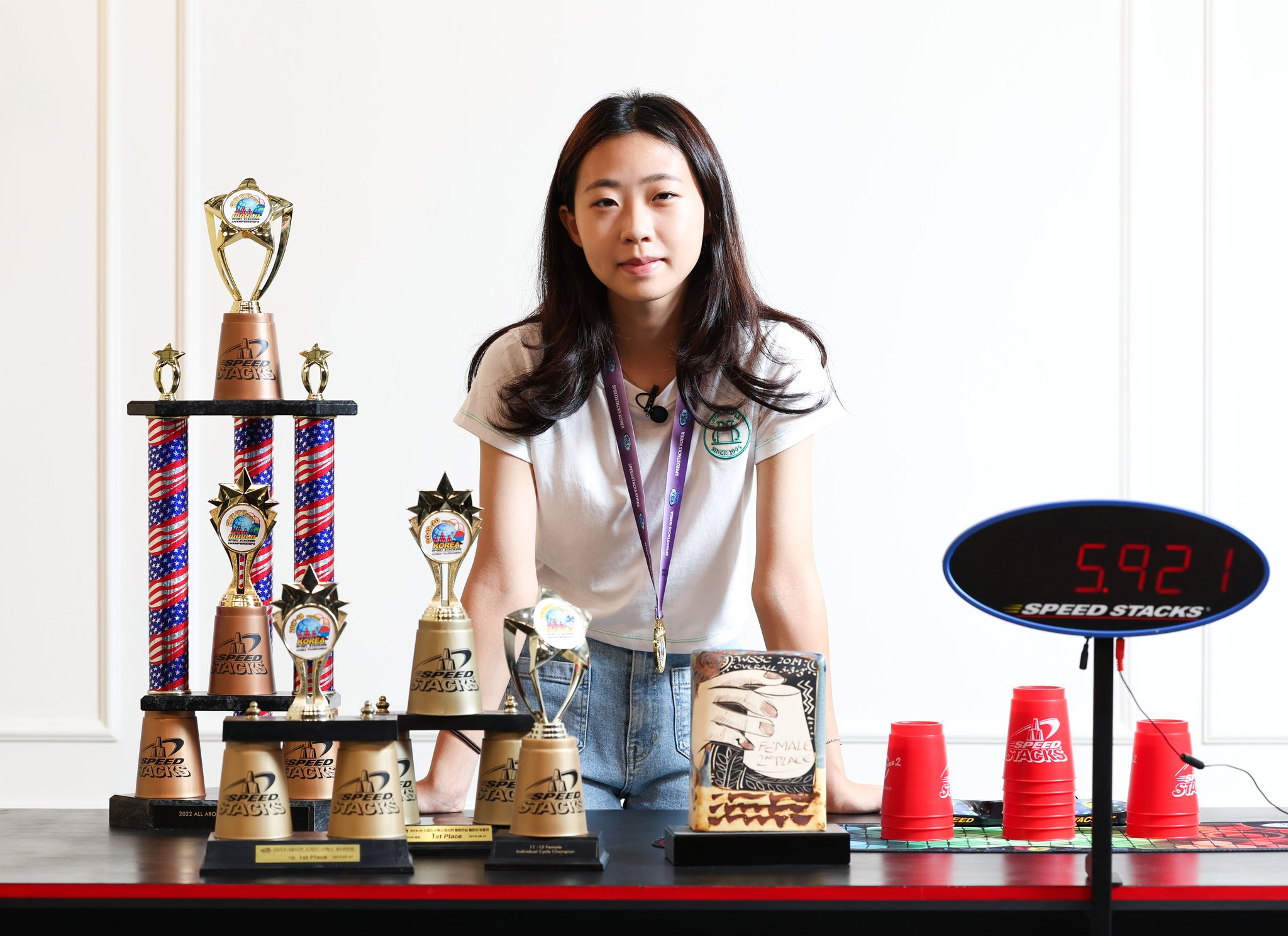 컵쌓기 스포츠스태킹의 달인 박세령. 우상조 기자