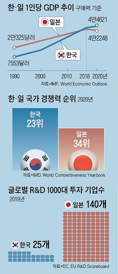 - 한·일 경제력 역전 보도가 요즘 많다.