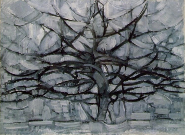 몬드리안이 1908년부터 그린 나무 연작입니다. '몬드리안 스타일'의 변화를 뚜렷하게 보여주는 재미있는 작품들입니다. 첫 그림은 분명 나무입니다. 나무줄기까지 정성껏 표현했습니다. 두 번째 그림은요. 나무라는 건 겨우 알아볼 수 있겠는데 확실히 좀 이상합니다. 생기가 하나도 없는 게 꼭 나무의 영정 사진 같습니다. 세 번째 그림은 더 심각해집니다. 나무가 거미줄 같은 선으로 산산이 조각났습니다. 곧장 "이건 근사한 나무군!"이라고 말할 수 있는 사람이 얼마나 될지 모르겠습니다.
