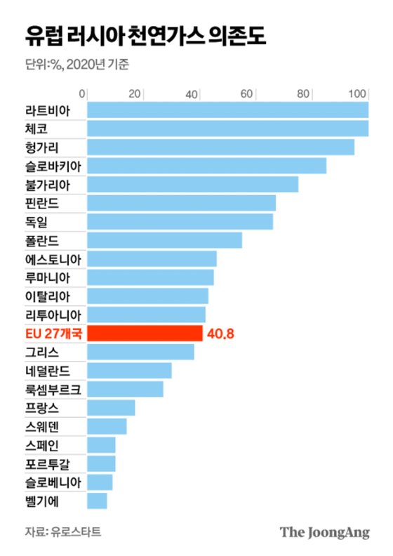 결과는 두고 볼 일이지만 제재로 인한 러시아의 피해와는 별개로 이 치킨게임 탓에 유럽이 감내해야 할 고통은 만만치 않다. 장기화하면 할수록 더욱 그렇다. 당장 이번 겨울을 넘기고 러시아 이외의 다른 공급처를 찾을 수 있을 것이다. 그래도 파이프를 통해 값싸게 들어오는 가스와 선박을 통해 멀리서 들여오는 가스의 가격 차이는 결코 무시할 수 없다.