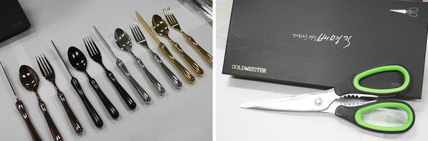 칼을 시작으로 주방용품 위주로 제품을 늘려갔다. 30년 넘게 도금 기술을 익히면서 터득한 13개의 특허 기술이 모두 들어간 집약체다. “바닥에 뒀을 때 수저의 머리 부분이 닿지 않아 청결하게 사용할 수 있는 수저 세트, 가위 날을 물결 모양으로 주조해 사용성을 올린 제품, 칼날이 바닥에 닿지 않는 커트러리용 나이프 등을 직접 사용해보면서 아이디어를 붙여 갔어요.”