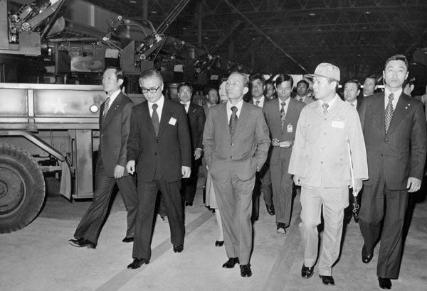 1970년대 초반 박정희 대통령이 방위산업체 현장을 시찰하고 있다./조선일보DB