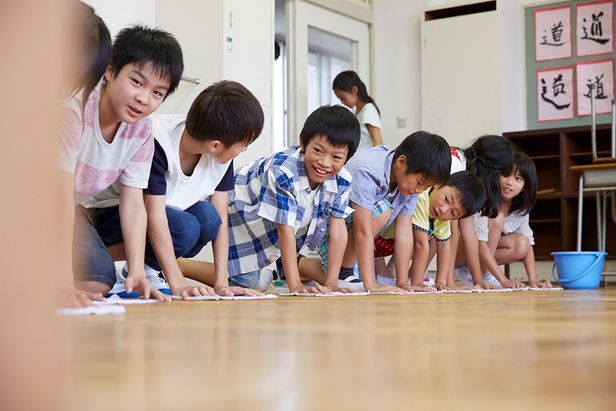 일본은 어릴 적 엄격한 교육 영향으로 대부분 국민이 결벽에 가까울 정도로 주변을 깨끗이 한다. 사진은 일본 초등학생들이 손걸레로 바닥을 닦는 모습. /이키다네