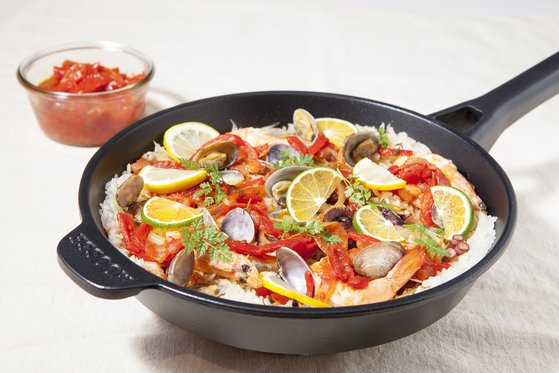 겨울은 해산물이 맛있는 시기잖아요. 토마토와 새우·바지락·오징어 등 해산물의 감칠맛, 여기에 근사한 비주얼까지 갖추고 있어서 연말이나 연초, 가족이나 친구 등 여럿이 함께하는 자리에 냈을 때 가장 잘 어울리는 메뉴거든요. 특히 한국인이 좋아하는 토마토와 해산물 베이스여서 남녀노소 누구나 부담 없이 좋아할 맛이에요.