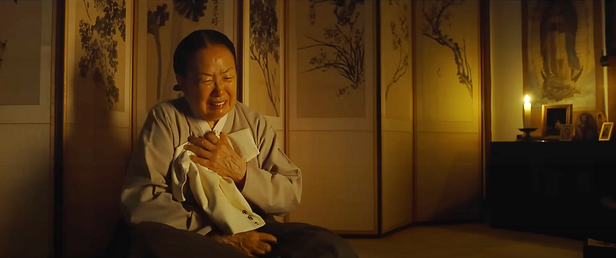 영화 '영웅' 최고의 명장면. 나문희가 배냇저고리를 안고 노래하는 대목이 객석을 울음바다로 만든다. /CJ ENM