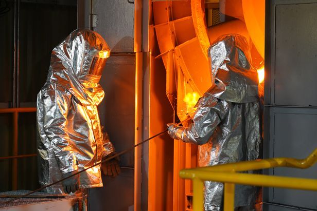 경북 봉화군 석포면 영풍 석포제련소 내 2차 전지 리사이클링 파일럿 공장에서 작업자들이 건식 용융로 앞에서 조업을 하고 있다. /영풍