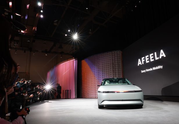 세계 최대 가전·IT(정보기술) 박람회 CES 2023 개막을 하루 앞둔 1월 4일(현지 시각) 미국 네바다주 라스베이거스 컨벤션센터(LVCC) 중앙홀에서 열린 'SONY 프레스 콘퍼런스'에서 소니혼다모빌리티의 새 전기차 브랜드 아필라(AFEELA)의 콘셉트카가 공개되고 있다./뉴스1