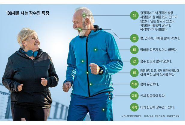 평균수명이 80세 넘는 나라가 한국(83.6세)을 포함, 30여 국에 이르고, 각 나라마다 100세 넘게 사는 초장수인이 늘면서 백세인 특징을 분석하는 연구들이 잇따르고 있다. 일본은 지난해 100세 이상 장수인이 9만526명까지 늘었다. 한국은 주민등록 상 2만명이 넘지만 실제로는 8000명 정도로 추산된다. 매년 늘어나는 속도도 빨라져 작년 한 해에만 약 2000명이 100세가 됐다.