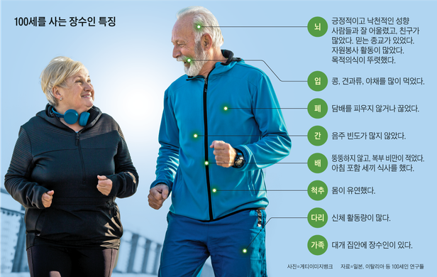 하지만, 그들의 생활 방식에는 다수의 공통점이 있었다. 많은 사람들이 비흡연자이고, 비만이 아니며, 낙천적인 성향으로 스트레스에 잘 대처했다. 이런 생활 덕에 고혈압, 심장병, 암, 당뇨병 등에 같은 나이 사람보다 적게 걸렸다. 김광준 세브란스병원 노년내과 교수는 “좋은 유전자를 가진 사람이 100세 장수에 유리하지만, 좋은 생활 습관 환경 속에서 살아야 그 유전자가 제대로 작동한다”며 “백세인 중에는 평균수명의 사람처럼 질병 위험 유전자 변이를 가진 경우도 많다”고 말했다.