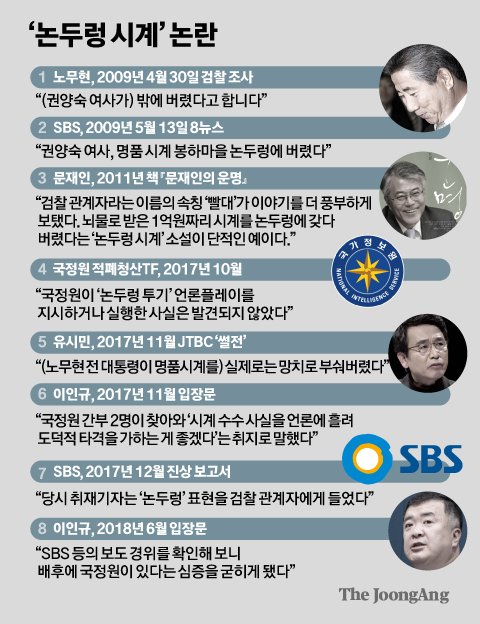 이 변호사는 ‘논두렁 시계’ 사건에 대해서도 설명했다. 2009년 5월 13일 SBS 뉴스에서 노 전 대통령이 박연차 회장으로부터 회갑선물로 받은 2억원짜리 명품시계에 대해 “집사람이 봉하마을 논두렁에 내다 버렸다”고 진술했다는 보도가 나왔다. 그러자 홍만표 당시 대검 수사기획관이 기자들로부터 확인 요청이 있다는 보고를 받았다고 한다. 이 변호사는 “봉하마을 논두렁이라는 표현이 문제였으나 어차피 봉하마을 사저 밖에 논이 있기 때문에, ‘밖에 내다 버렸다고 진술했다’고 굳이 정정해줄 경우 시계 수수 사실만 확인시키고 오히려 더 희화화 될 것 같아 어떠한 확인도 해줄 수 없었다”고 회고했다.
