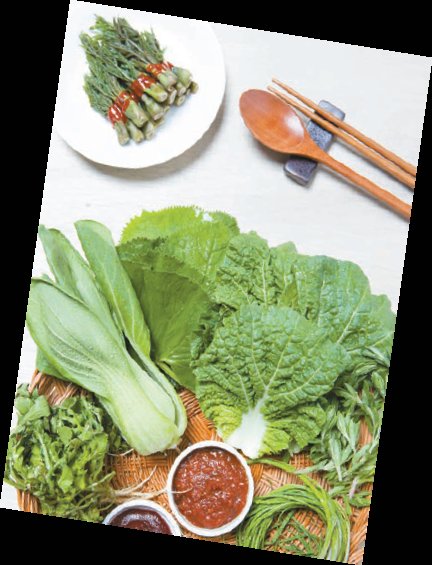 해독 등 다양한 효능을 지닌 제철 약용 작물에는 더덕·쑥과 방풍나물이 있다. 더덕은 폐와 기관지를 촉촉하게 하고 가래를 없애주며 열을 내리는 효능이 있다. 또 비타민 B1·B2·B6, 비타민C, 칼슘·섬유질 등이 풍부해 춘곤증을 쫓는 데 도움이 된다. 쑥의 정유(기름) 성분인 시네올(cineol)은 특유의 향과 시원한 맛을 내는데, 항균·해독 작용이 있고 소화액 분비를 늘려 소화 작용을 원활하게 돕는다. 방풍나물(갯기름나물)에도 더덕처럼 비타민 B1·B2, 비타민C, 칼륨·칼슘 등이 풍부하다.