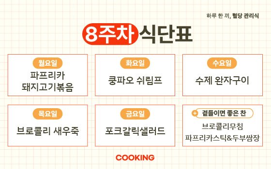 하루 한 끼, 혈당관리식 8주차 식단. 그래픽 박경란
