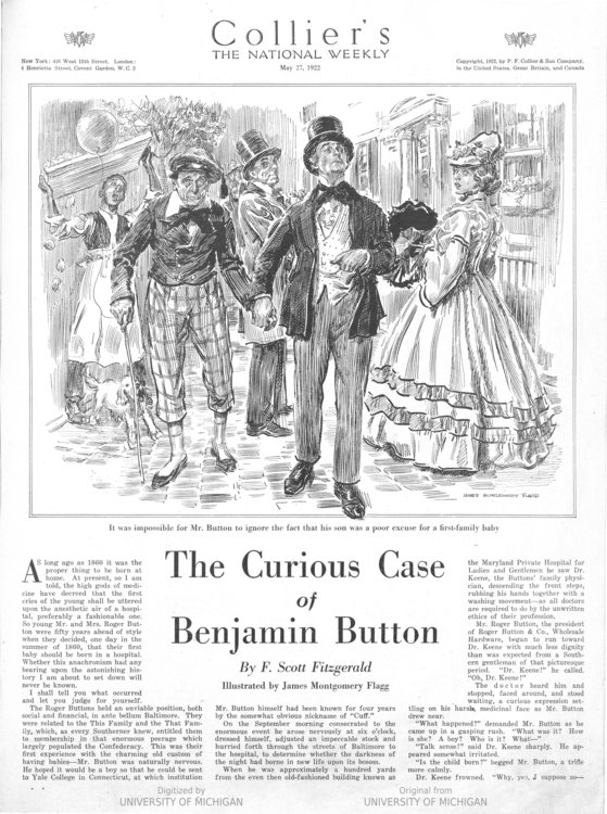 F. 스콧 피츠제럴드가 쓴 소설 『벤자민 버튼의 시간은 거꾸로 간다』의 일러스트.
