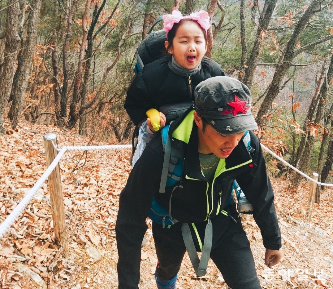 딸을 맘껏 안아주기 어려운 형윤은 배낭처럼 메는 캐리어에 아이를 태우고 틈만 나면 나들이를 다녔다. “신랑은 몇 시간이고 아이를 어깨에 메고 산에 가고 바다도 가고 전국을 다녔어요. 물고기도 같이 잡고, 스키도 같이 타고, 부루마블 게임도 하고…. 요즘은 신랑이 아침에 누룽지 끓여서 아이 밥 먹이고 등교까지 시켜서 저는 많이 편해졌어요. 다른 어떤 아빠들보다 아이와 많을 걸 함께 해요. 하나린은 아빠의 장애를 느낄 겨를이 없을 거예요.”