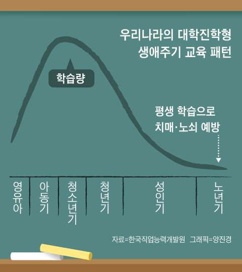 그런 면에서 지금까지 존재했던 우리나라 입시 제도와 이에 맞춰진 공부 방법은 시대에 역행하는 면이 있다. 생애 초기에 아주 잠깐, 사교육비를 더 쏟아넣으며 바짝 공부하기만 하면 그 뒤부터는 더 쉽게 소득을 올려 몸 고생, 머리 고생 없는 여생을 살 수 있다는 가설은 이제는 작동하지 않을 가능성이 높다. 사실 건강하고 행복한 100년짜리 삶은 평생 나에게 중요하면서 또 즐거운 것을 찾고, 이들을 추구하는 과정에서 끊임없는 몸 고생과 머리 고생으로 만들어진다. 각자의 삶은 그렇게 평생을 조각해 나가야 할 예술품이다.