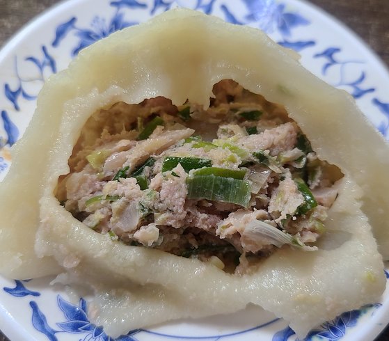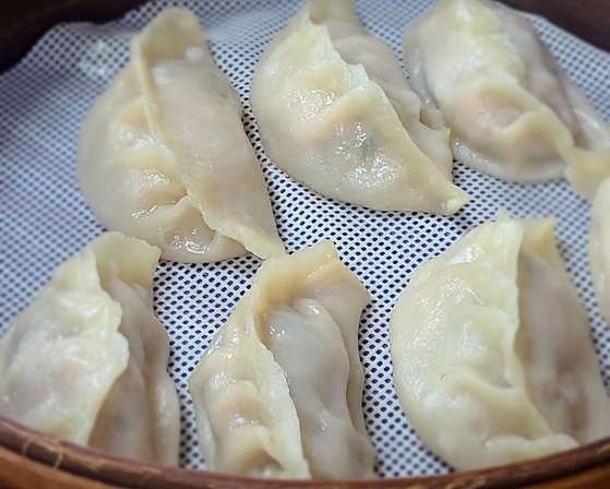 부산 '마가만두'의 찐만두. 만두 피가 두꺼운 듯하지만 부드러워 밀가루 냄새가 나지 않는다.