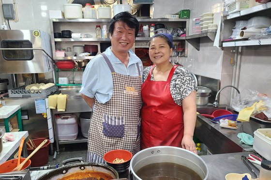 부산 내호냉면은 개업 100년이 넘은 노포다. 사진은 201년 촬영한 내호냉면의 3, 4대 사장 내외. 장진영 기자