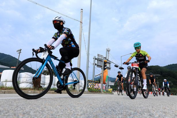 지난 27일 오전 강원도자전거연맹이 주관하고 인제군이 후원하는 제7회 인제 한계령 그란폰도 대회가 열려 자전거 동호인들이 힘차게 달리고 있다. /연합뉴스