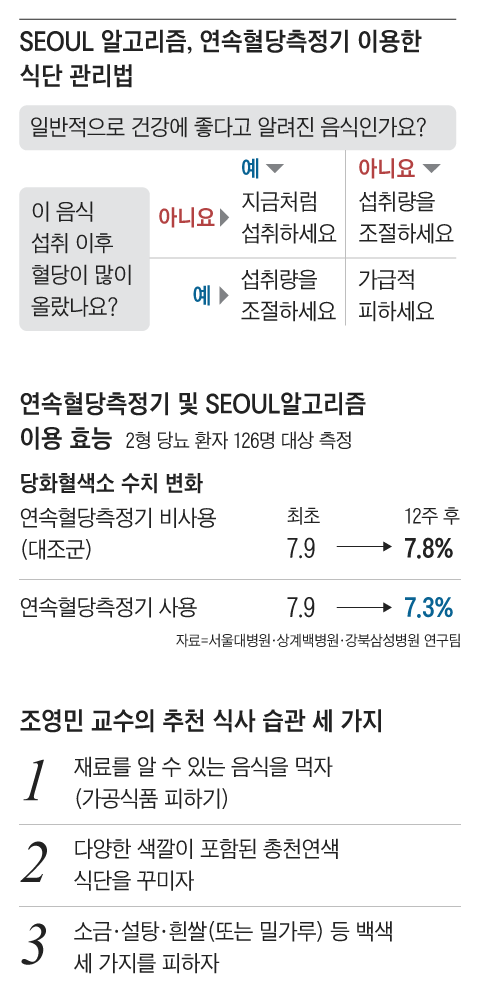연속 측정기를 이용한 간편한 혈당 관리 알고리즘도 등장했다. 서울대병원·상계백병원·강북삼성병원 연구팀이 개발해 국제 학술지 ‘당뇨병 관리(Diabetes Care)’에 발표한 이른바 ‘SEOUL 알고리즘’이다.