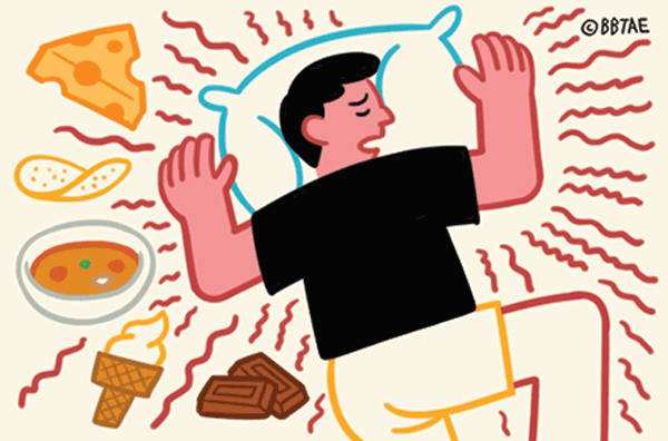 무슨 일이 있어도(come rain or shine) 잠자리 전에 먹으면 안 되는 것은 아이스크림이다. 단 음식(sugary food)은 처음엔 혈당치를 치솟게 했다가(send blood sugar levels spiking at first) 잠이 드는 시간에 급격히 떨어지게 한다. 그러면 몸에선 응급 상황이 벌어진 것으로 착각해(delude itself) 스테로이드 호르몬 코르티솔 분비를 증가시켜 새벽 시간에 여러 차례 잠에서 깨어나게(wake up multiple times in the wee hours) 한다.