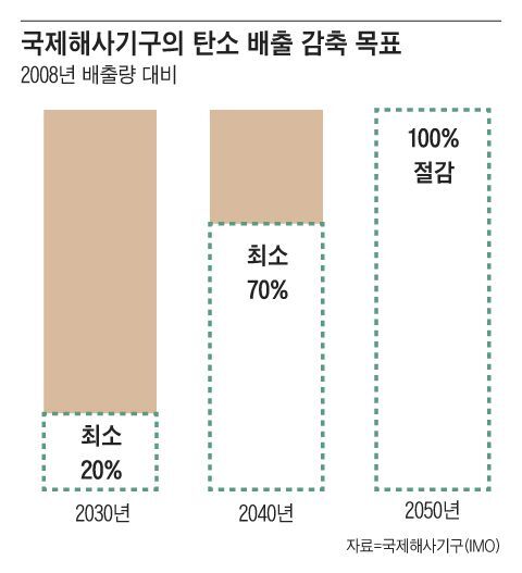 세계 온실가스 배출량 가운데 2.7%가 국제 물동량의 90%를 처리하는 선박에서 뿜어져 나온다. 지난 7월 유엔 산하 국제해사기구(IMO)는 “2050년까지 탄소 배출량을 제로로 만들겠다”고 목표를 제시했다. 아마존·유니레버·미쉐린·이케아 같은 물류업계의 주요 고객사도 “앞으로 친환경 선박 업체와 계약하겠다”고 했다.