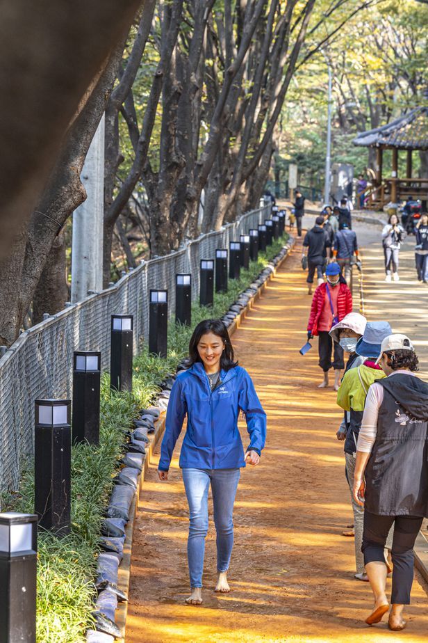 발 씻는 세족장도 두 군데 있지만 최근 입구에 한 곳 더 설치했다. 서울의 한 구청은 이달 초 개장을 목표로 새 황톳길을 만들었는데, 공사 현장을 매의 눈으로 감시하던 맨발인들이 “합성 부직포 위에 흙을 올리면 효과가 없다”고 항의해 이걸 고치느라 개장을 늦췄다고 한다.