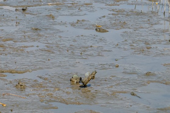 강진만 갯벌의 주인공 짱뚱어. 4~10월 물 빠진 낮 시간에 강진만 생태공원을 찾으면 갯벌 위를 뛰노는 짱뚱어를 쉽게 발견할 수 있다. 백종현 기자