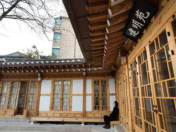 - 입구의 나무현판 ‘建明苑’이 분위기 있다.