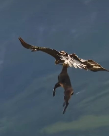 검독수리가 산양(추정)의 머리를 움켜쥐고 채가다가 떨어뜨리는 '드롭킬' 직전의 모습. /Beauty Love Facebook 캡처
