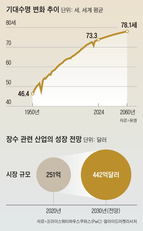 노화와 장수를 연구하는 학자들은 수명 연장이 사회경제적으로도 마이너스가 아니라 오히려 축복이 될 수 있다고 본다. 영국의 경제학자인 마틴 엘리슨 옥스퍼드대 교수와 데이비드 싱클레어 하버드대 교수는 “미국에서 기대 수명을 10년 연장할 수 있다면 그 경제적 효과는 367조달러 수준이 될 것”이라고 밝혔다. 소위 ‘장수 배당(longevity dividend)’ 효과다. 일찍 사망하거나 병상에 누워 있는 대신 경제 활동을 한다면 엄청난 수준의 경제적 가치 창출이 가능하다는 의미다.
