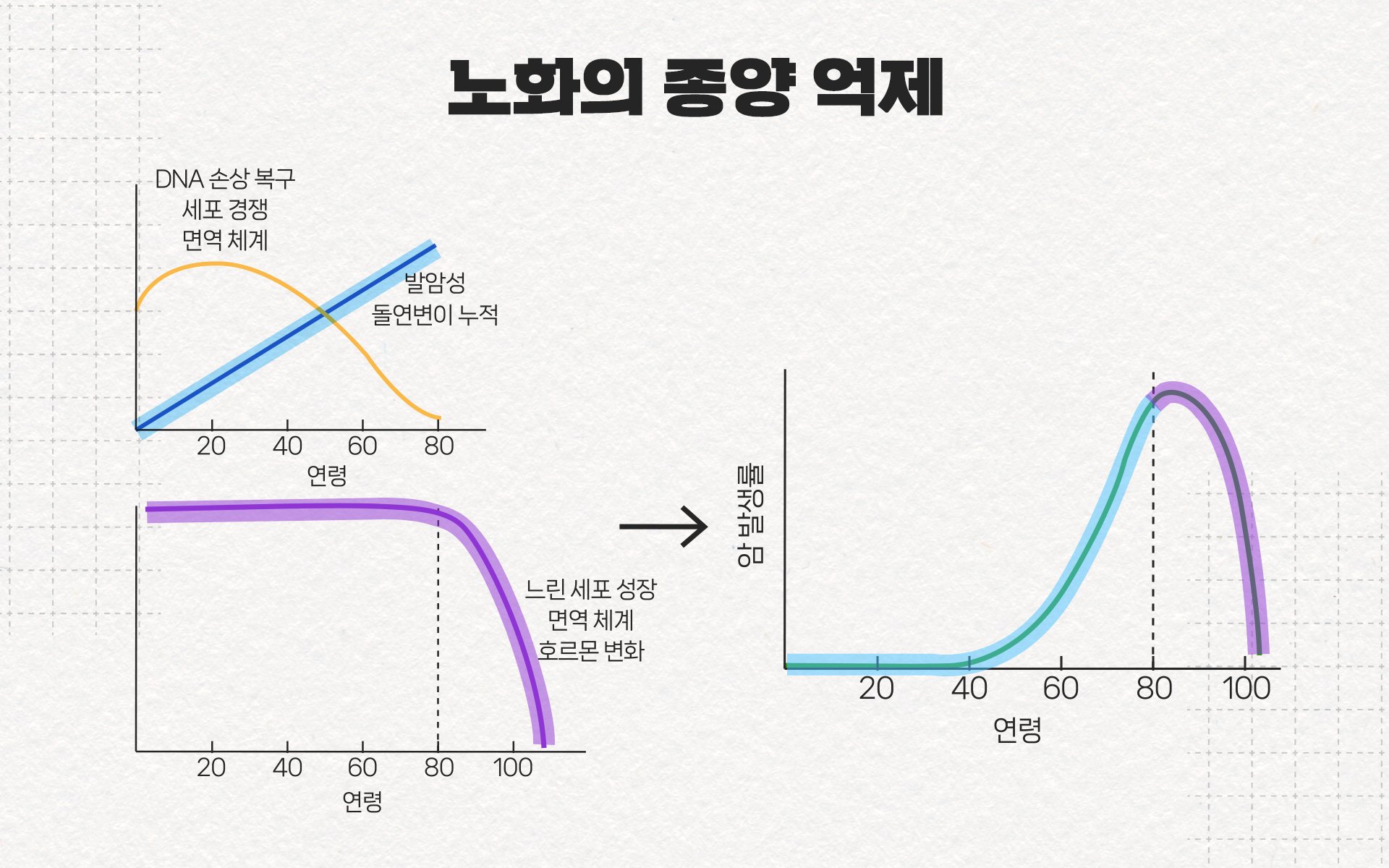 노화는 종양의 시작도 늦췄고 성장도 억제했죠.