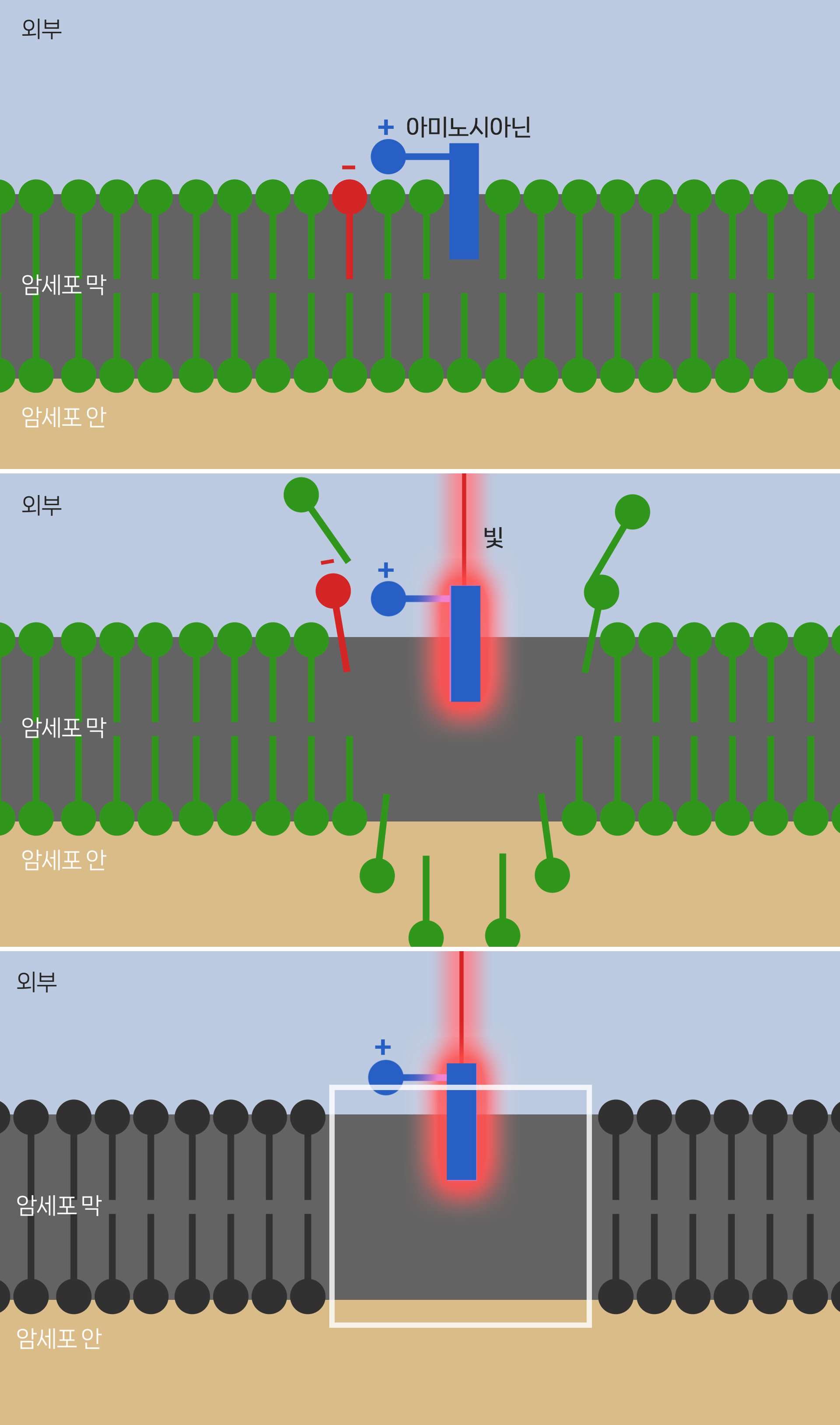 암세포의 세포막에 붙은 아미노시아닌이 빛을 받고 진동하면 세포막은 순식간에 파괴된다. 이후 암세포는 몇 분 안에 사멸하고 만다.